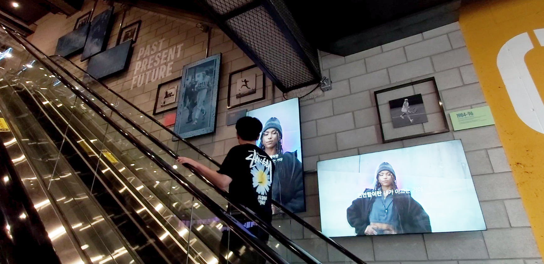 1층 ~ 2층 에스컬레이터에 설치된 6개 디스플레이 인터랙티브 기술 구현
