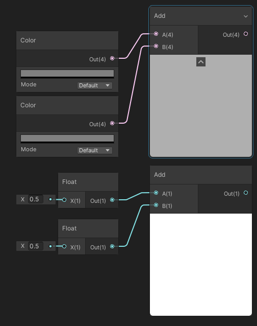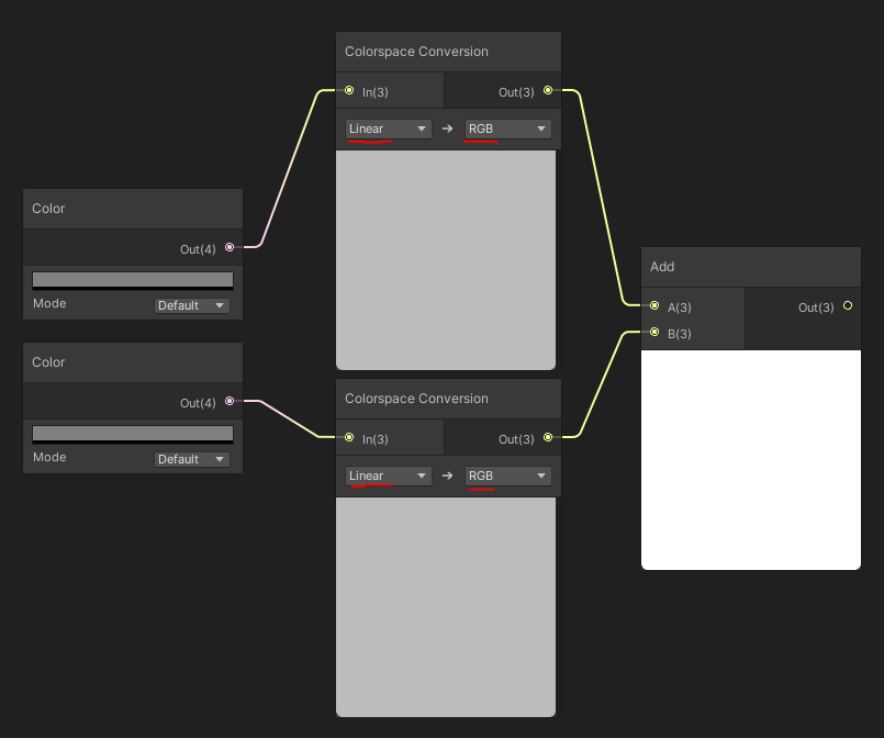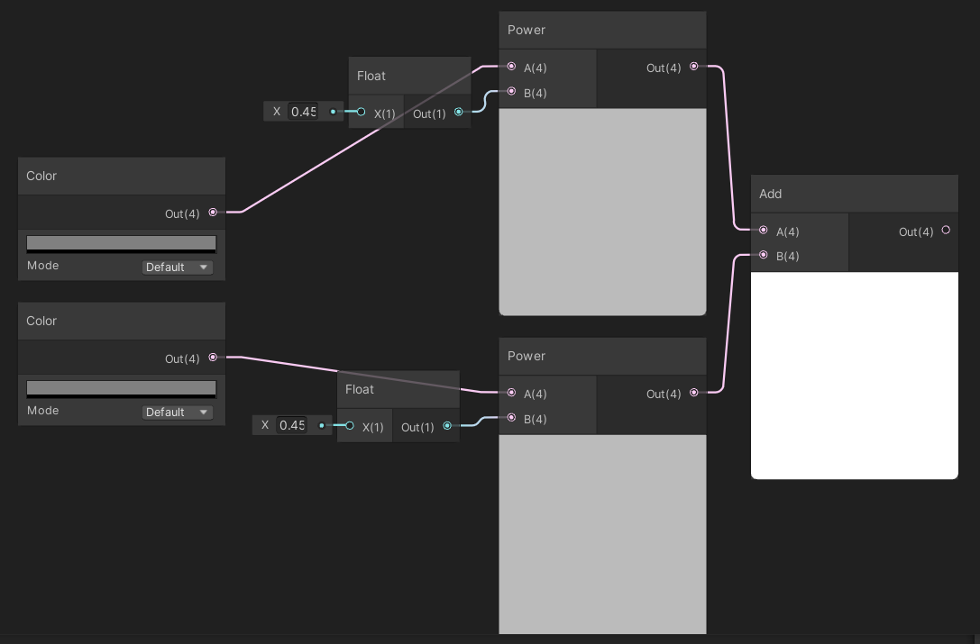 쉐이더 그래프에서 Color는 이미 밝아진 상태의 값을 보여줌.