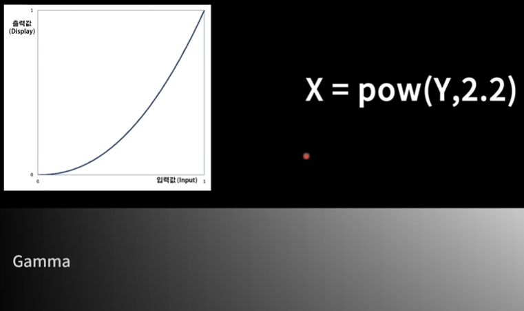 그래서 모니터는 어두운 곳에 민감한 인간의 감각에 맞춰 어두운 부분의 밀도를 올림.