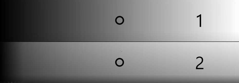 1번은 이미지를 감마 보정한 결과물임. 그래서 1번이 자연스러운 그라데이션 처럼 보임.