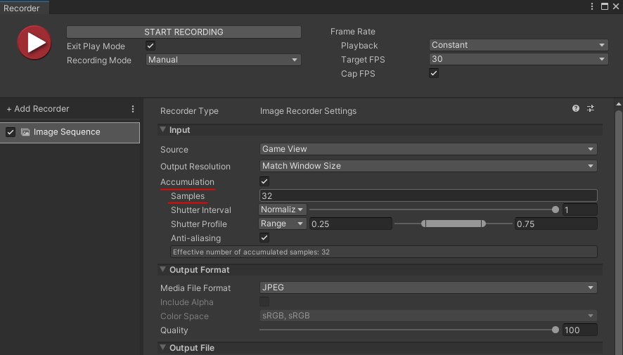 유니티 레코더를 사용해도 마찬가지로 Target Frame에 맞춰서 레코딩을 해서 원하는 만큼 연산되지 않은 프레임 결과만 녹화됨.