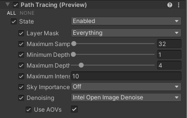 Path Tracing을 적용해도 플레이를 하면 Target Frame에 맞춰서 렌더되어서 설정한 Sample,Depth만큼 렌더링 되지 않고 다음 프레임 연산으로 넘어감.