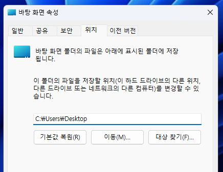그러나 바탕화면 경로명이 'Desktop'이 아니라 '바탕화면'이라고 설정되어 있는 경우 문제가 발생함.