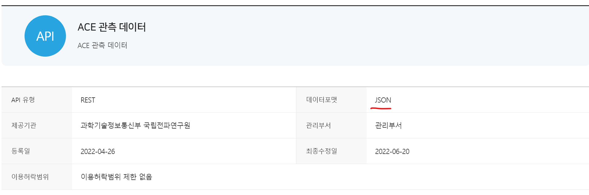ACE 관측 데이터의 경우 데이터 포맷이 JSON이라서 별도 변환 필요 없음