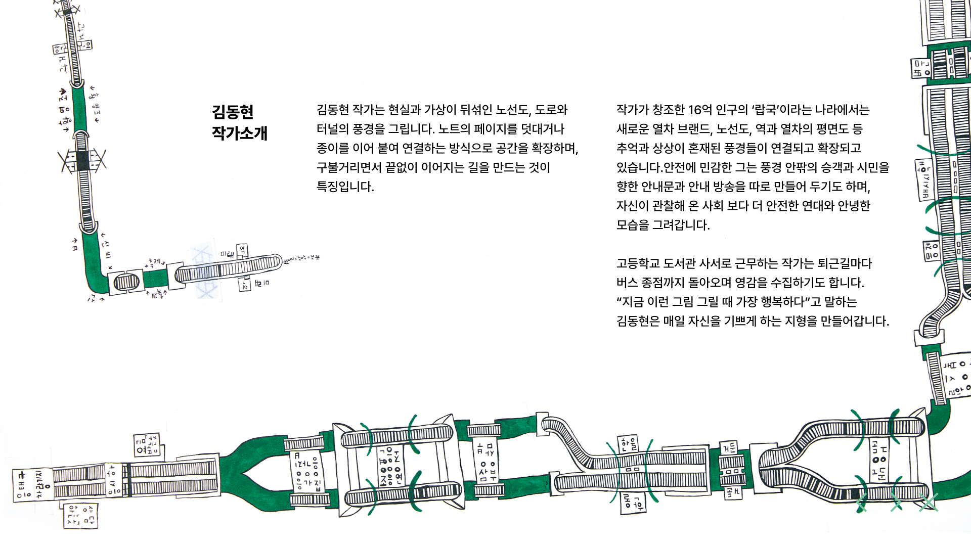 김동현 작가가 만든 '랍국'이라는 세계관에 등장하는 원작 그림, 글, 사건과 3D 스캔된 랍국 조형물을 활용해서 제작된 시리어스 게임 전시