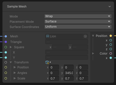 줄기 Mesh를 그대로 가져와서 Position 정보로 사용하고