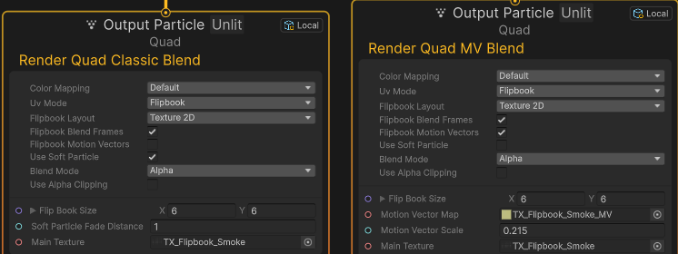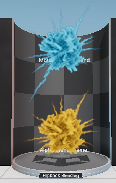 둘다 Flipbook Blending을 하지만 Motion Vector를 사용한 블렌딩 방식과 비교해서 보여준다.