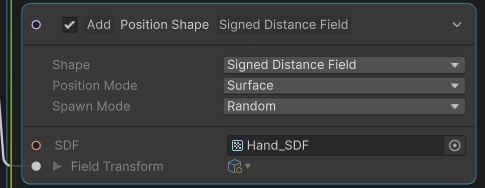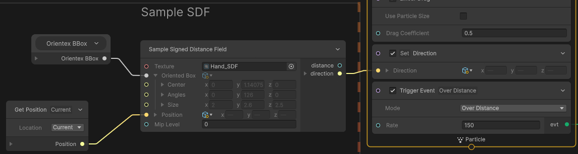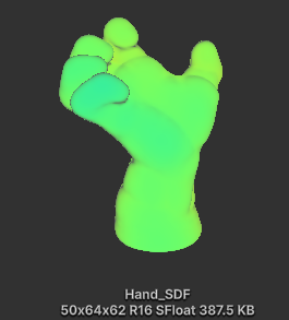 손 Mesh로 부터 계산된 SDF 데이터를 사용해서 손 표면에서 파티클 생성