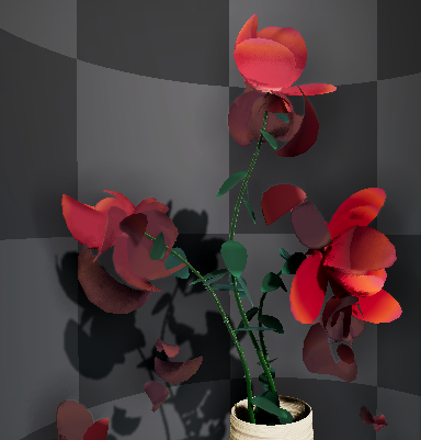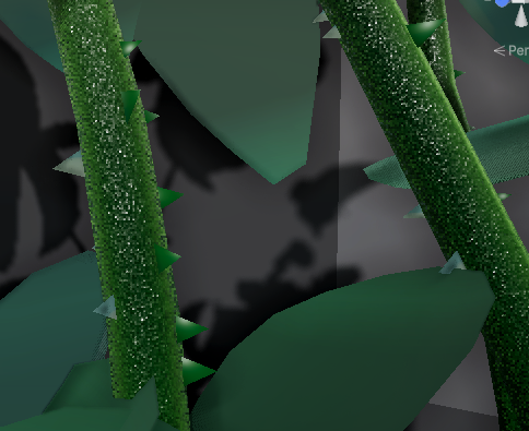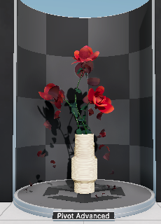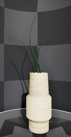VFX Graph를 없애면 꽃병과 줄기만 있는 형태로 나머지 꽃잎, 녹색 이파리, 줄기 가시가 VFX Graph로 표현된 부분