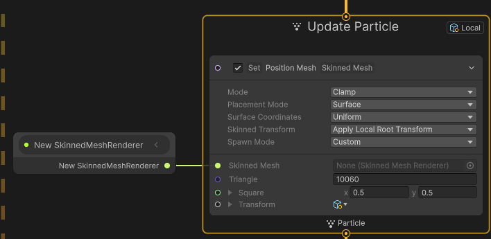 Update 단계에서 Set Posiiton Mesh Skinned Mesh노드로 지정된 Skinned Mesh위에