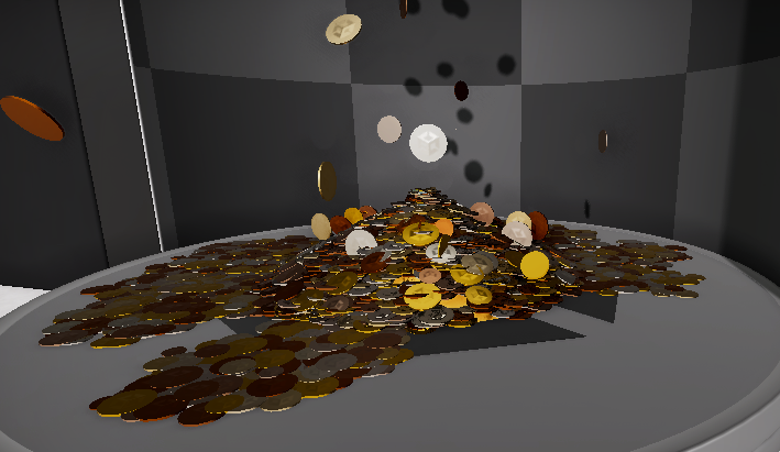 Falling Coins에는 Collision을 사용해서 부딪히고 튕겨져 나가게 함.