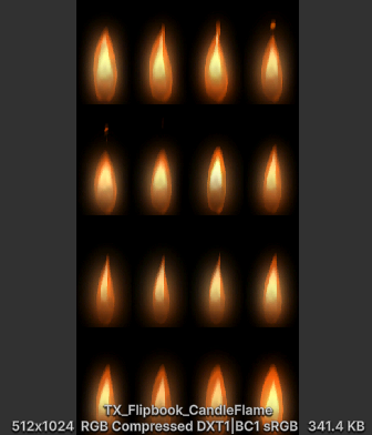 4x4인 16프레임 Flipbook을 30FPS로 재생한다.