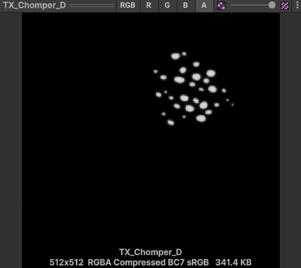 이 과정을 통해 R채널은 노란색, G채널은 파란색으로 해당 영역에만 파티클이 생성되게 된다.