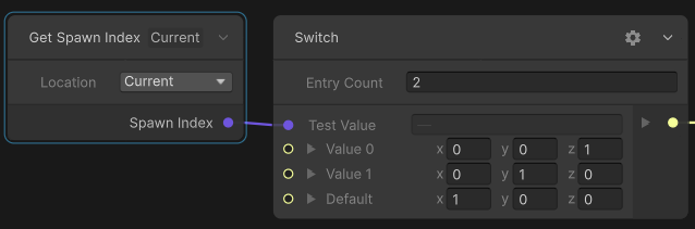Spawn Index를 받아와서 Switch노드에서 3개 Index가 서로 다른 xyz축 값을 가질 수 있게 해서 각각 Angle에 지정