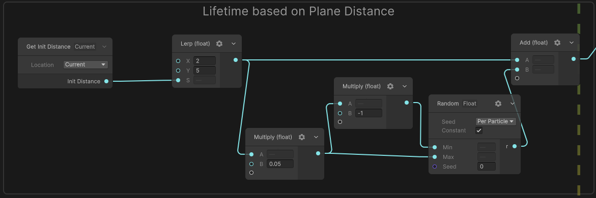 그래서 지면으로 부터 파티클의 거리 즉, 파티클 높이에 따라 다른 값이 지정되고 이를 기반으로 Lifetime이 다르게 설정된다.