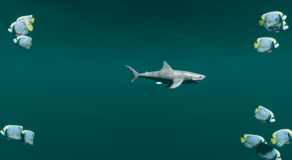 Levy Flight 알고리즘을 사용해 물고기의 자연스러운 움직임과 우연성을 구현했고, 먹이를 향한 접근 행동과 위협으로부터의 도피 행동을 추가했다. 관객은 마우스 좌클릭으로 먹이를, 우클릭으로 상어를 생성하여 생태계에 개입할 수 있다. 물고기의 움직임에 인간의 의도가 더해지면서 피아노 연주는 실시간으로 변화한다.