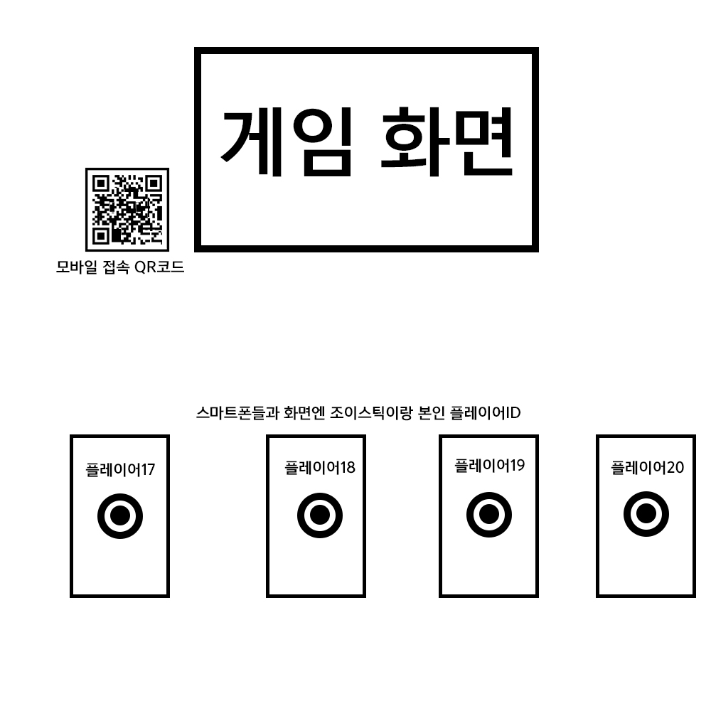 구조는 대충 이런식이다. 플레이어들은 자신의 스마트폰으로 QR코드를 통해 모바일 웹페이지에 들어간다.