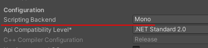 Scripting Backend를 Mono로 설정